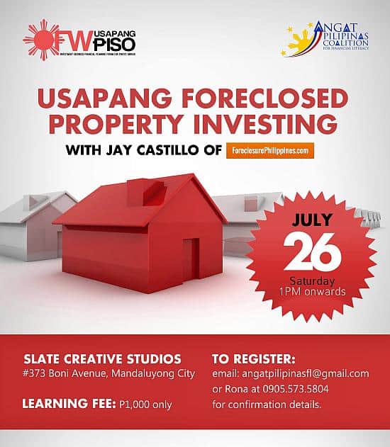 Change In Venue: Usapang Foreclosed Property Investing Seminar On July 26, 2014